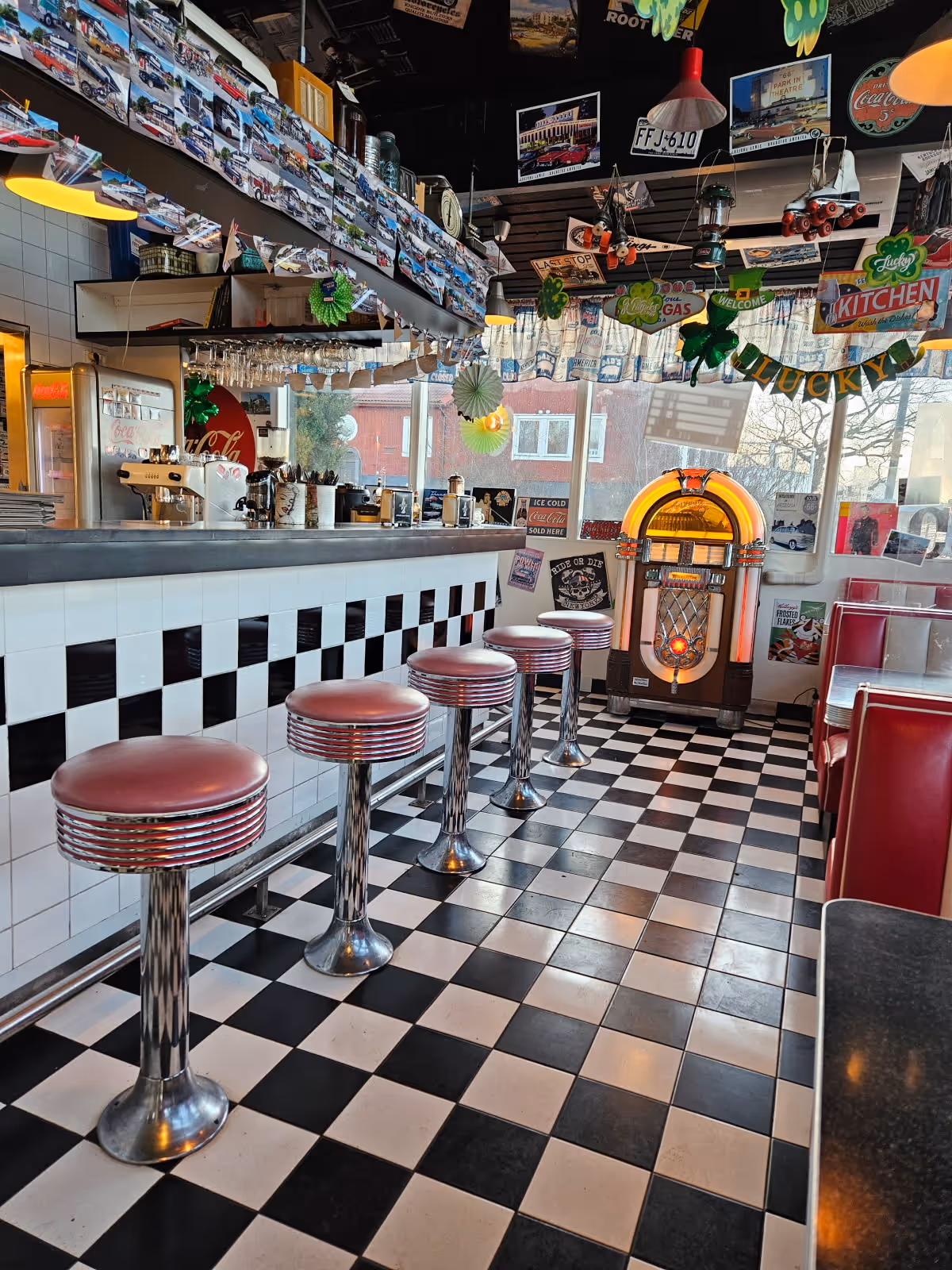 ✅ Unik inredning i klassisk diner-stil – en favorit bland bilentusiaster och matälskare