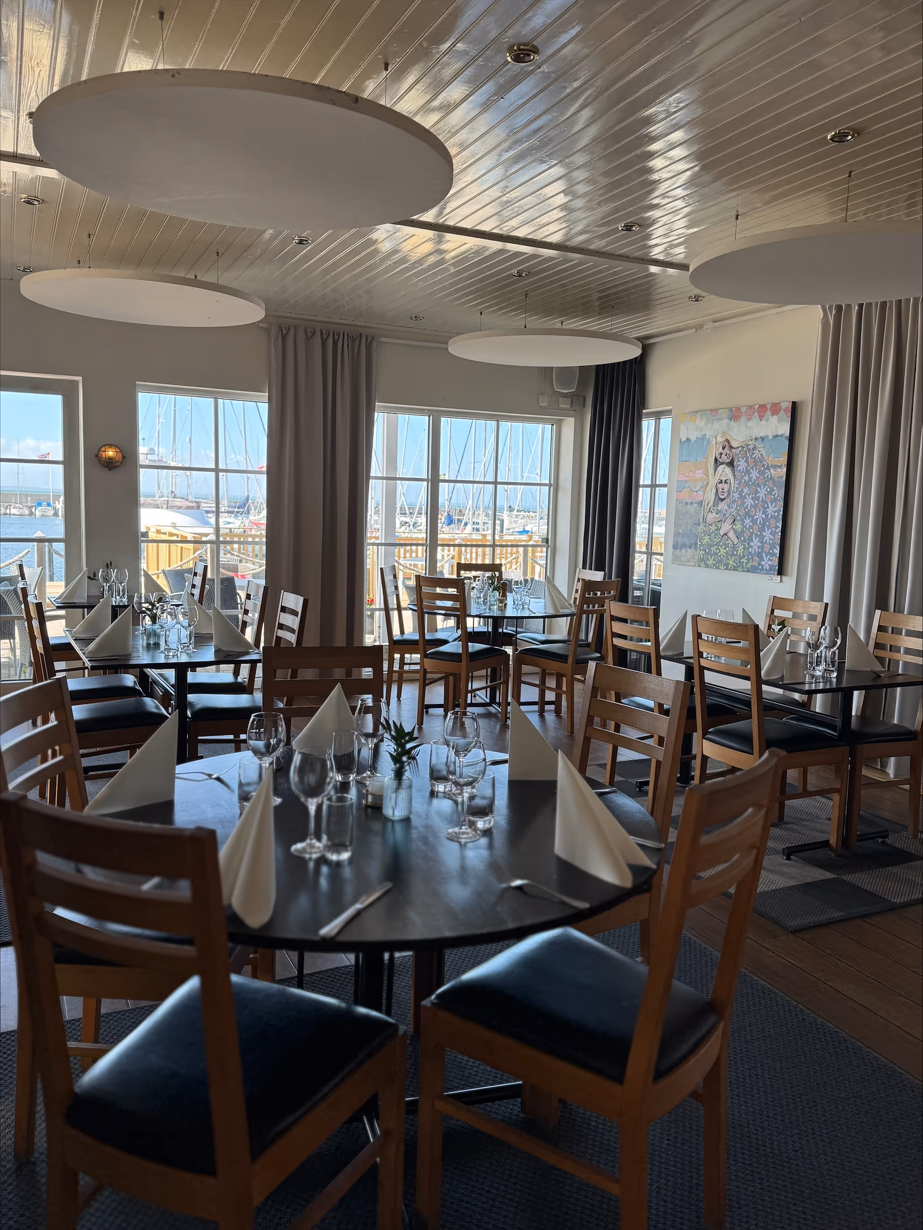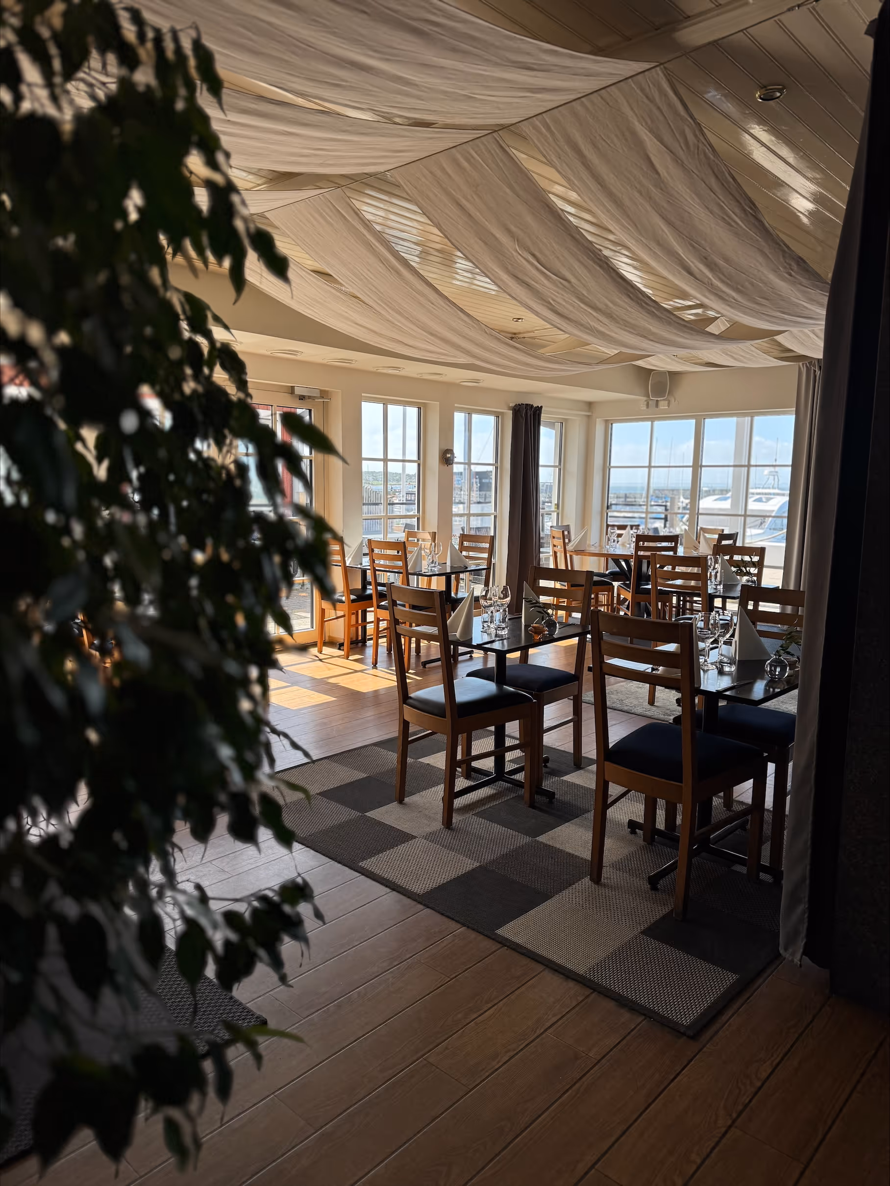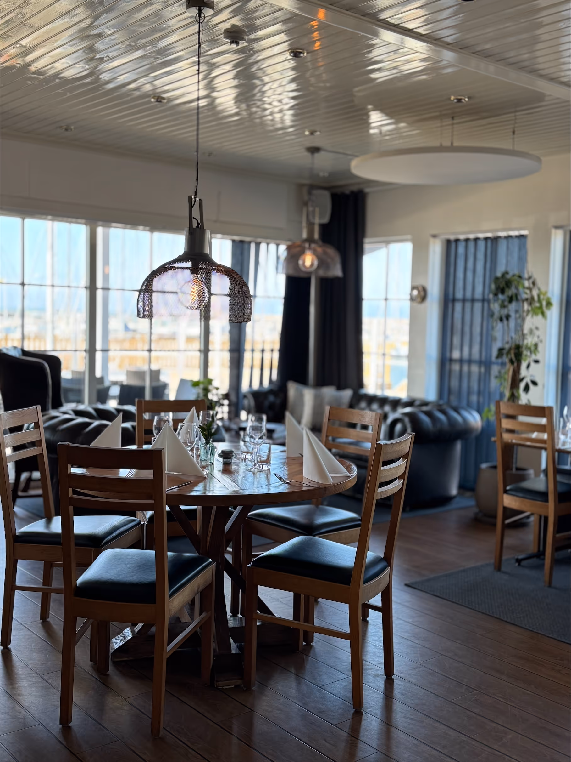 Det finns 125 platser inomhus och en utomhusservering med 100 platser med en fantastisk utsikt över hamnen och Öresund. Både lunch och kvälls servering erbjudes.