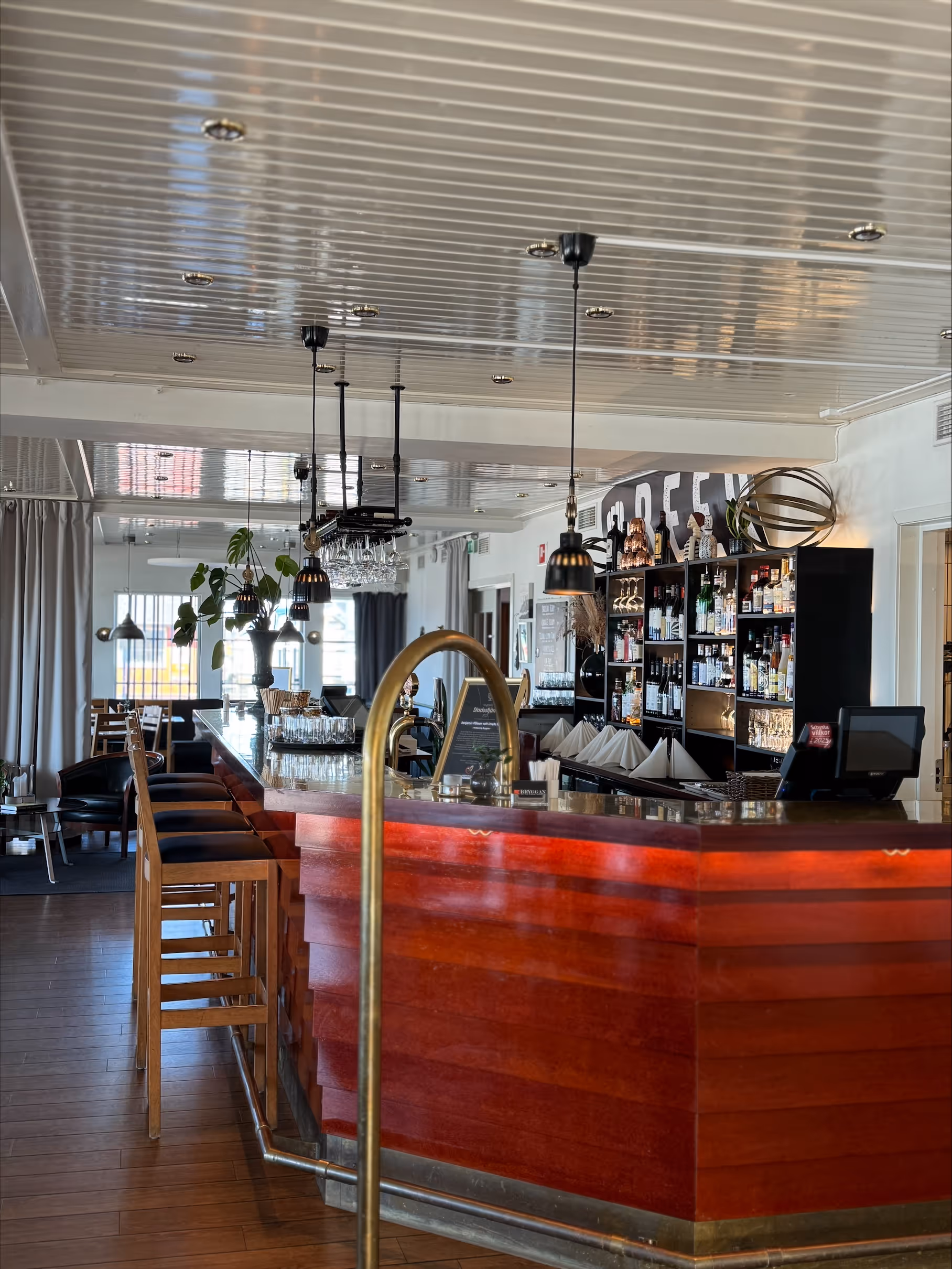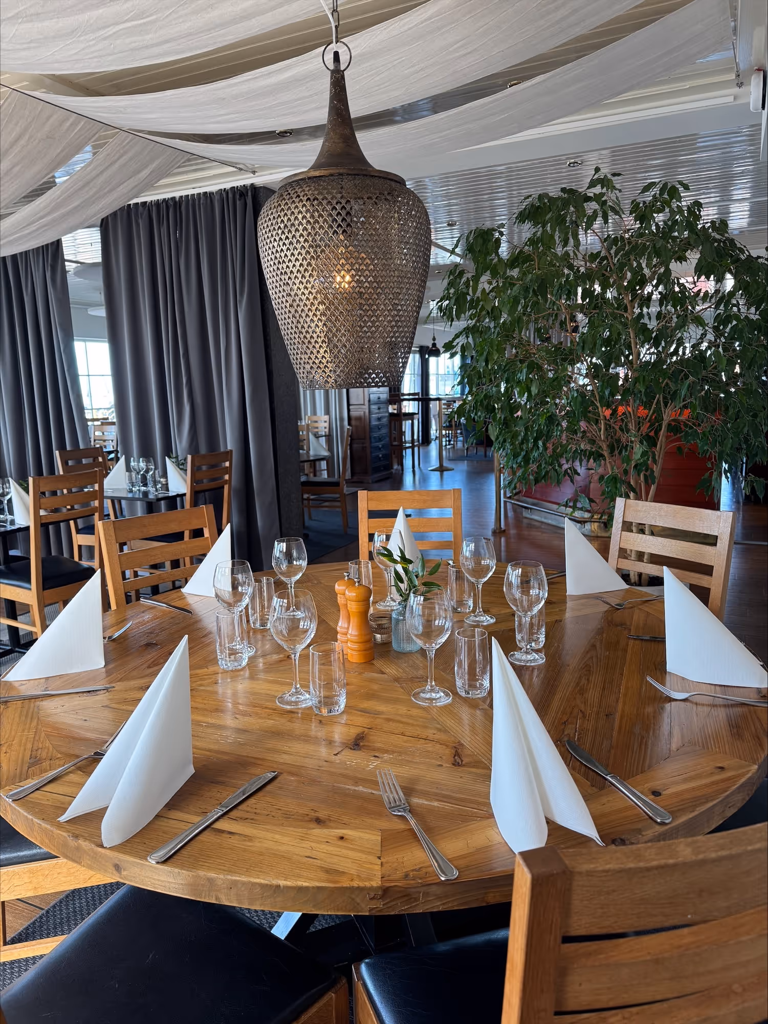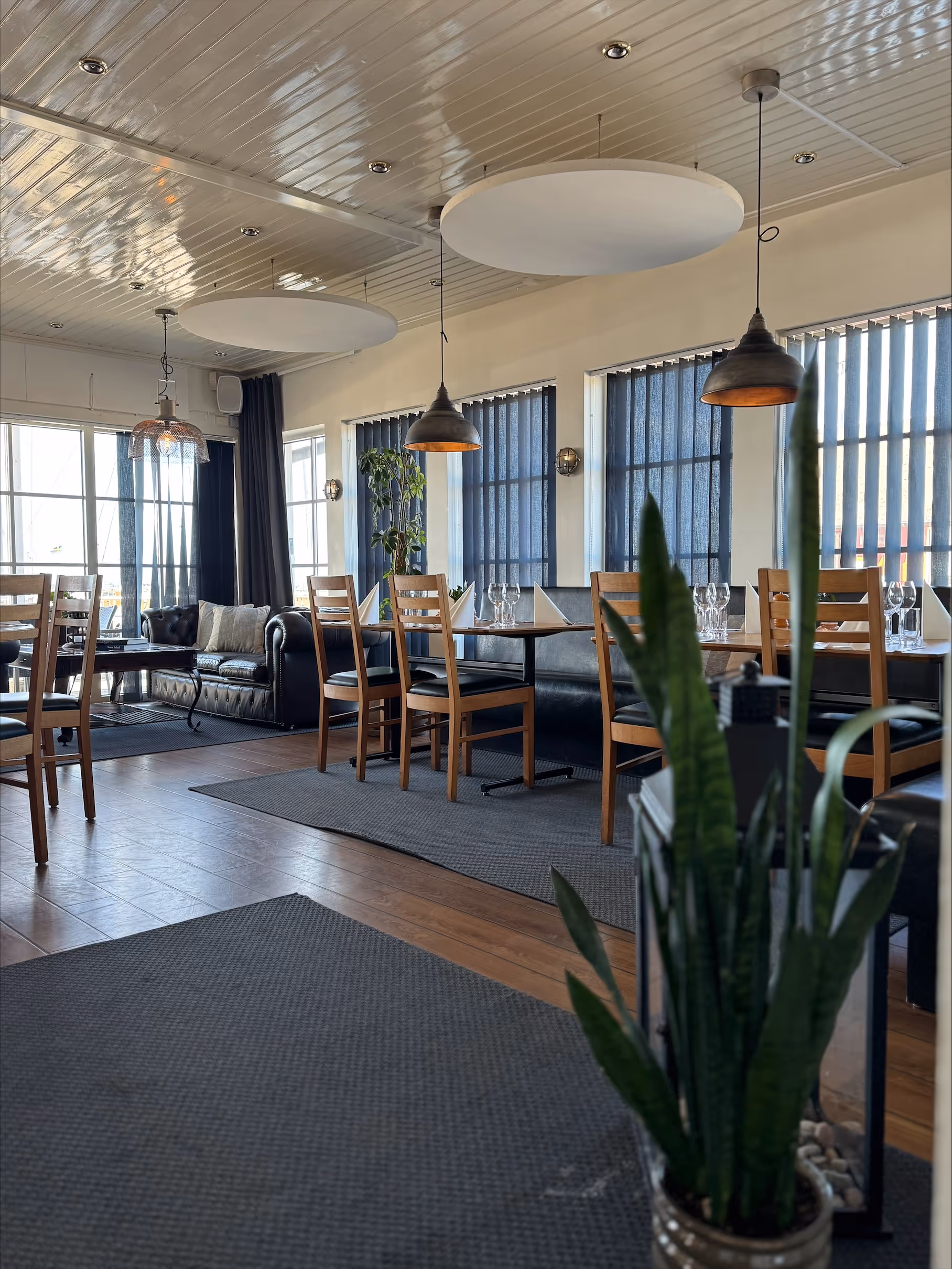 Det finns 125 platser inomhus och en utomhusservering med 100 platser med en fantastisk utsikt över hamnen och Öresund. Både lunch och kvälls servering erbjudes.